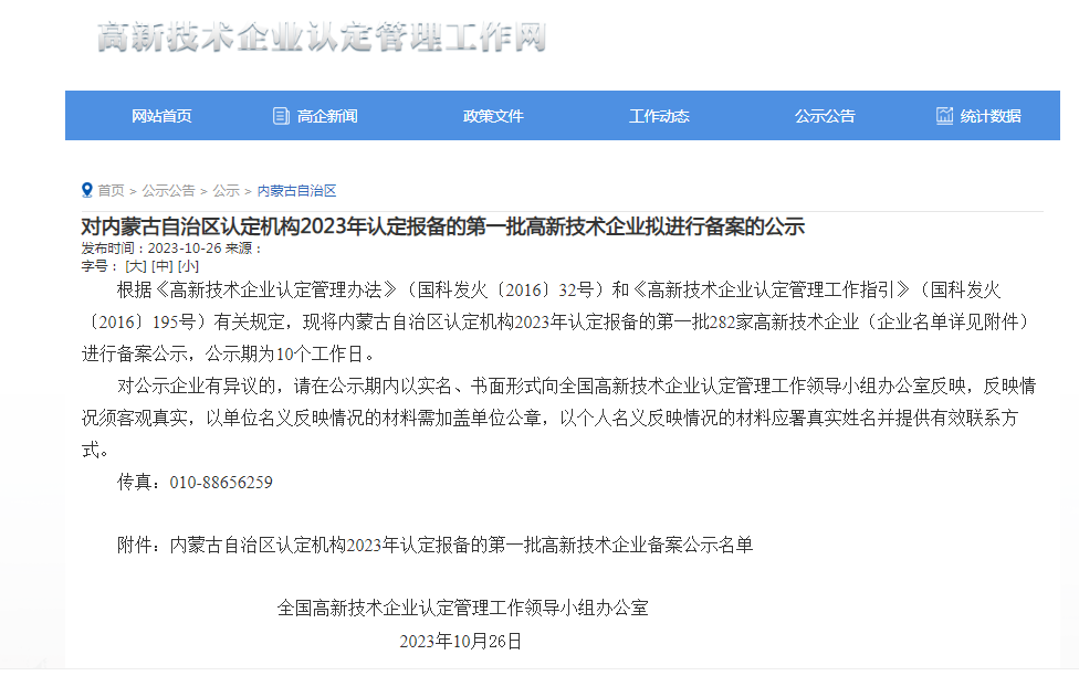 10月26日,根據(jù)《高新技術(shù)企業(yè)認定管理辦法》(國科發(fā)火〔2016〕32號)和《高新技術(shù)企業(yè)認定管理工作指引》(國科發(fā)火〔2016〕195號)有關(guān)規(guī)定,對內(nèi)蒙古自治區(qū)認定機構(gòu)2023年認定的第一批282家高新技術(shù)企業(yè)進行公示,內(nèi)蒙古佰惠生新農(nóng)業(yè)科技股份有限公司位列其中。