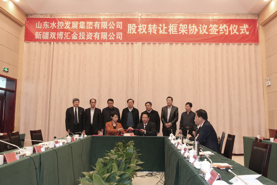 2月28日,山東水控發(fā)展集團有限公司(以下簡稱:水控集團)與新疆雙博匯金投資有限公司(以下簡稱:雙博匯金公司)在雙河市舉行股權轉(zhuǎn)讓框架協(xié)議簽約儀式。新疆生產(chǎn)建設兵團第五師、雙河市黨委常委、副師長王作敏,副市長葉松出席簽約儀式,新疆生產(chǎn)建設兵團第五師、雙河市國資委主任李實主持簽約儀式。