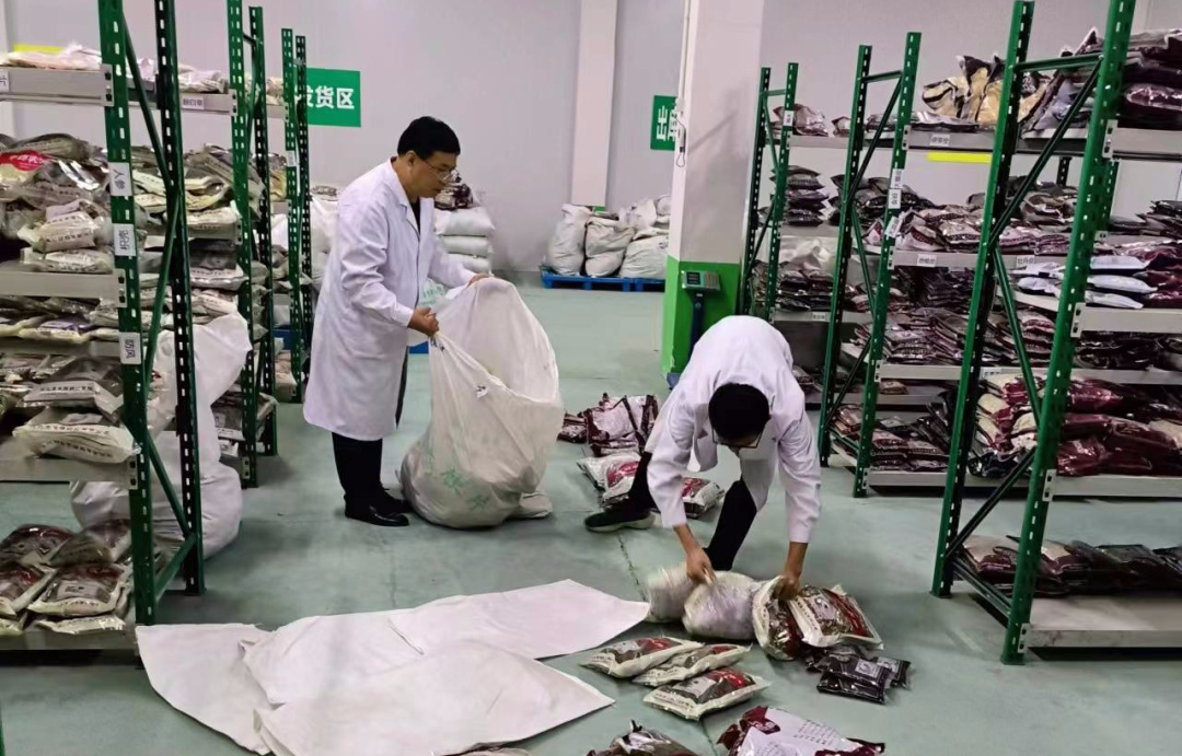 ▲德欣公司副總經(jīng)理宋明嶺和值班員董建呈在假期期間為客戶揀貨并發(fā)貨,保證假期工作“不斷檔”。