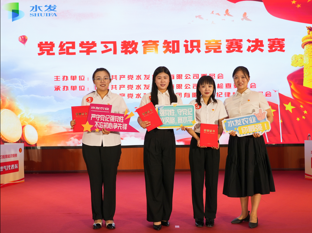 6月25日,水發(fā)集團舉辦的黨紀學習教育知識競賽決賽圓滿落幕。由集團黨群宣傳部(統(tǒng)戰(zhàn)部)陳敏、吳爽,權屬子公司黨務工作者常淑婷3名同志組成的水發(fā)農業(yè)集團代表隊,憑借扎實的知識儲備、頑強的拼搏精神,歷經初賽的激烈角逐,晉級決賽并榮獲三等獎。